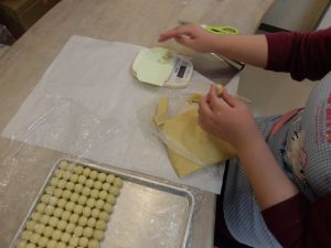 ) 今回の取材では、お菓子班で行う作業について紹介します。