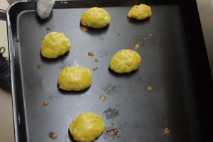 ハニーレモンクッキーの焼き上げにも空気抜きという作業がありました。こんな瞬間で撮影できたのが何より感激でした。(ブルーム
