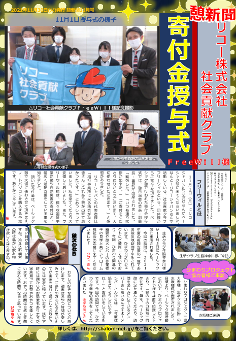 憩新聞11月号が発行されました。(本来昨日が発行でしたが印刷の故障つき今日になりました)