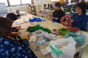 今日も打ち込み作業からクリスマスリースの製作まで幅広く行っています。(茨木)
