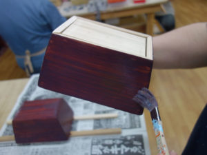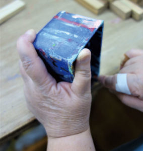 他には、終わった筆洗器に固まった絵の具の汚れを落としています。正に掃除。